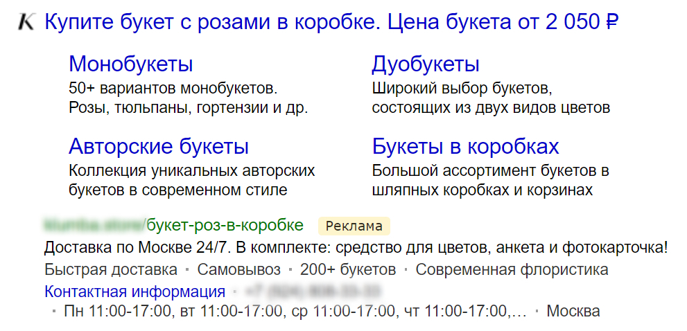 Стоит отметить, что даже те запросы, в которых не было продающих или ГЕО добавок, являлись целевыми, так как вся SEO-выдача по таким запросам состояла из коммерческих сайтов с доставкой букетов, а, следовательно, посетители ищут именно покупку цветов.
