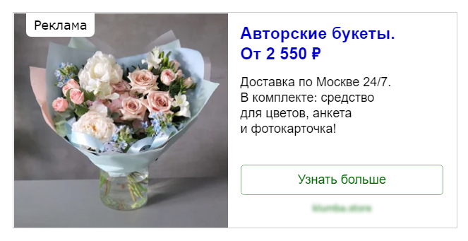 Пример текстово-графического объявления в РСЯ для авторских букетов