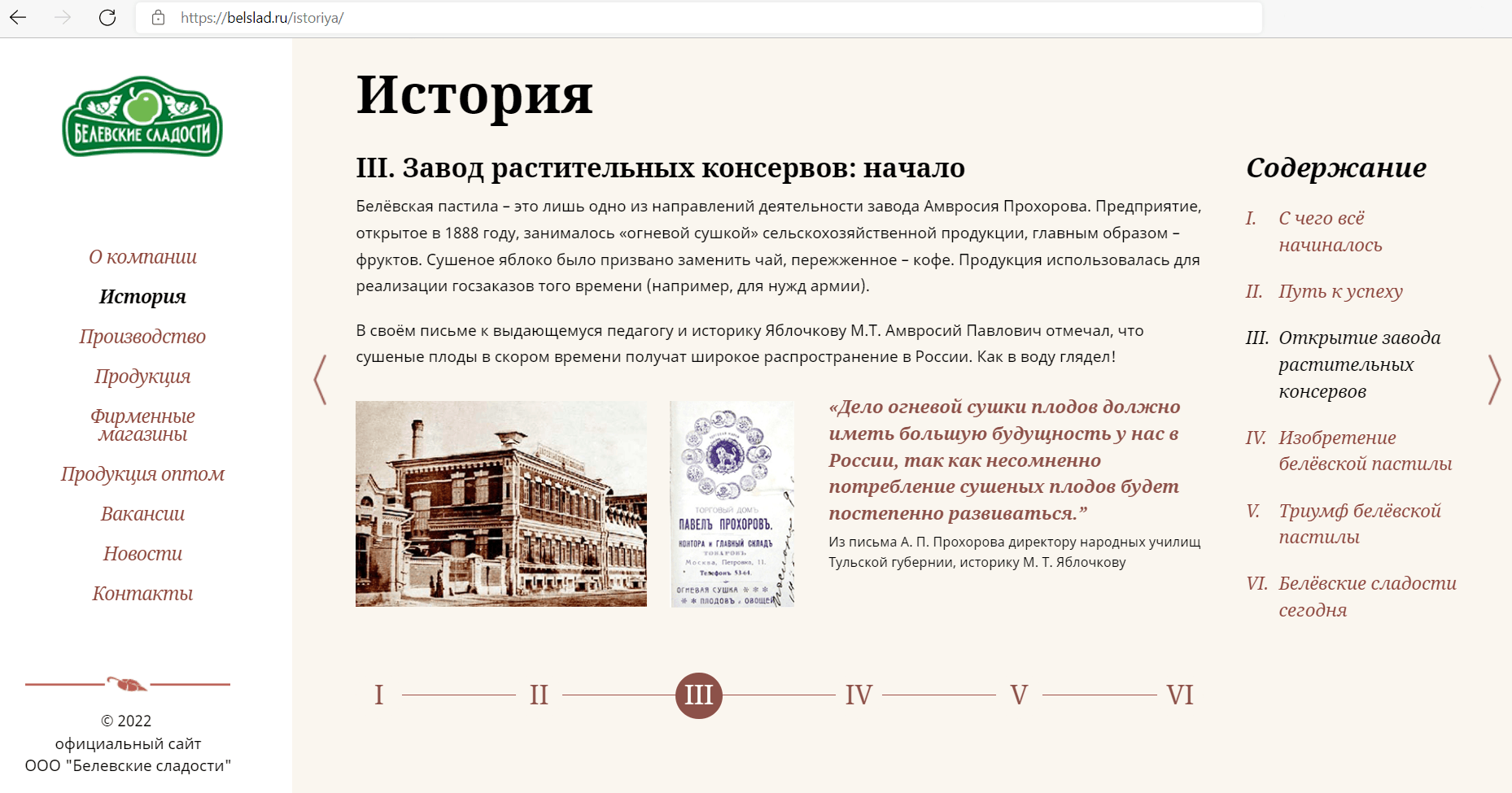 Представить в сети завод «Белевские сладости» как сайт производителя и площадку для оптовых покупателей.